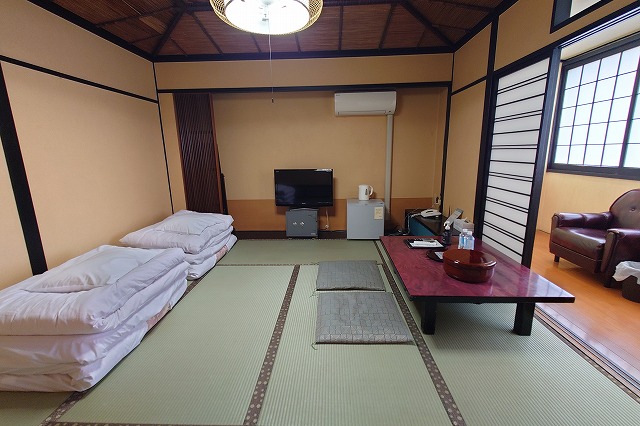 お風呂は大浴場と小さい大浴場(ネーミング!)とあり、男女入れ替え制。夕方は大浴場の方が女湯だった。木の浴槽と陶器の浴槽があり、陶器の方はお湯が抜けていた。ちなみに夫が翌朝大浴場に行ったときはちゃんと両方お湯が入っていたという。