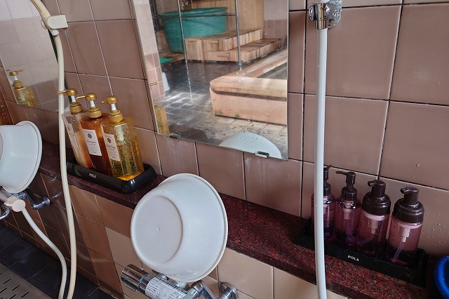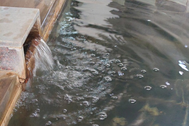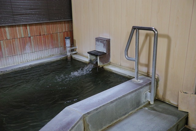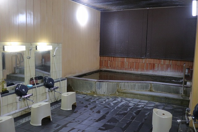 お湯は無色透明で少し塩素消毒臭。わずかやキシつき。冷鉱泉だが少し熱いぐらいに加熱してある。
