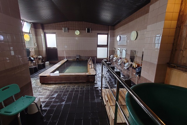翌朝は小さい大浴場。こちらは木の浴槽が一つだが木の浴槽が好きなので落ち着く。