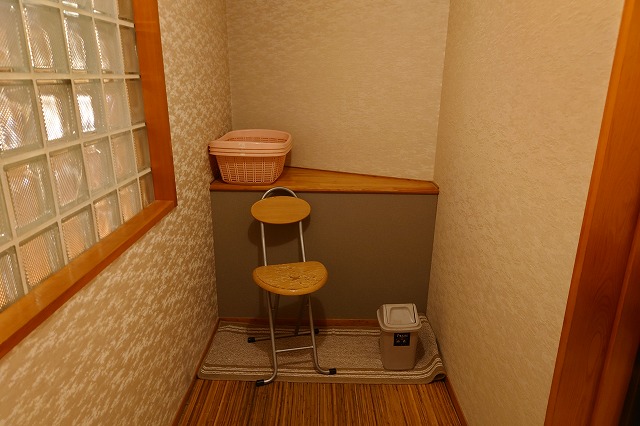 なお、ドライヤーは脱衣所に無いが、洗面台の方に備え付けてある。なんせ脱衣所には余分なスペースもコンセントも無いから。