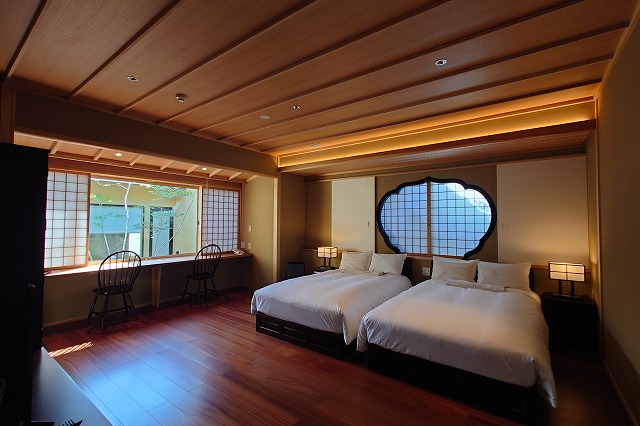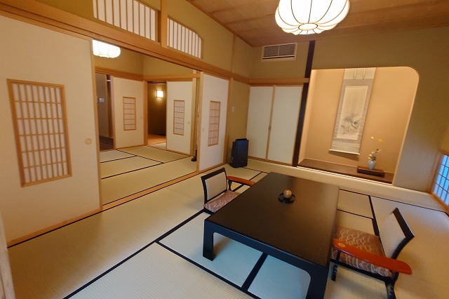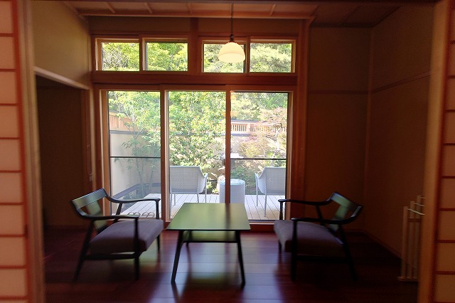 なにぶん狭く入り組んだ温泉街にあったため、消防車も近づけなかったということだ。館主の小野さんはもう一度「松籟荘」を建て直すにあたって、自分の理想を全てつぎ込んだ。昔の松籟荘の名残も残した。そうして2024年に完成したのが全室露天風呂付きの新生「松籟荘」だ。
