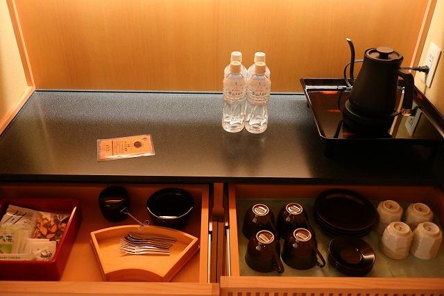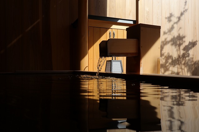 温泉に関しては、使っている源泉は「よろづや」と同じ。そして館内に大浴場にあたるものはなく、各室備え付けの露天風呂を使うか、本館よろづやの大浴場に行くことになる。よろづや隣の共同浴場 湯田中大湯にも自由に入れる。
